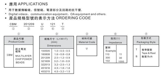 CBM片式磁珠高阻抗,無引線,符合EIA標(biāo)準(zhǔn)