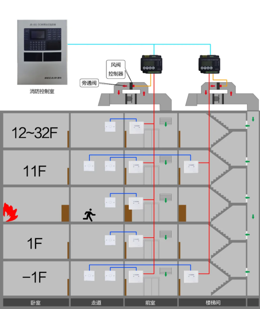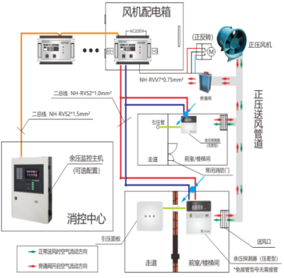 在消防行業,一般是通過余壓探測器來時刻監控樓梯間與前室之間的氣壓差,根據差值大小來控制風機給樓梯間或前室的送風量,使樓梯間的氣壓始終高出前室氣壓一定范圍內。阻止煙霧擴散,順利打開逃生門,且在逃生過程中遲可能不因過多煙霧吸入,保護人員安全;