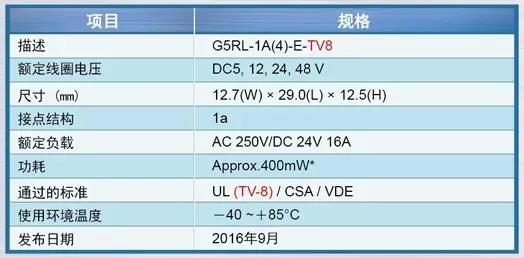 16A切換繼電器G5RL的新產(chǎn)品線。