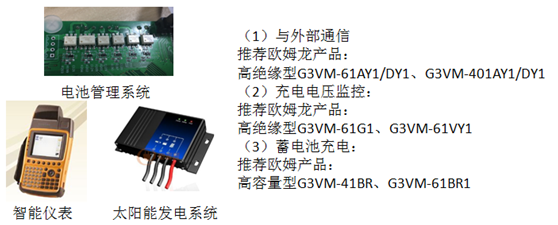 1)能源設備:包括電池管理系統、電力計、智能儀表、二次能源、太陽能發電系統等等,MOS繼電器在產品上所起的作用是充電電壓的監控、蓄電池充電,外部通信信號輸出。
