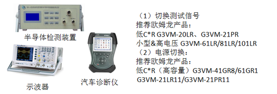 2)測量儀器、測試儀:包括示波器、汽車診斷儀、半導體檢測裝置等,繼電器在產品上主要起的作用是切換、電源切換。