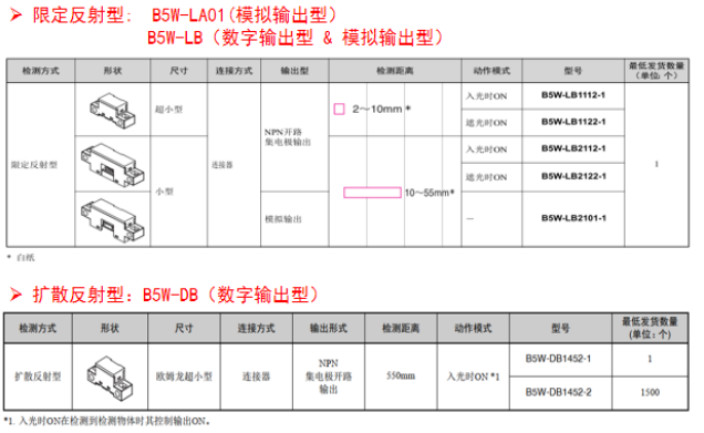歐姆龍B5W系列傳感器有數字輸出型和模擬輸出型,,同時根據不同檢測距離可以適時選擇。