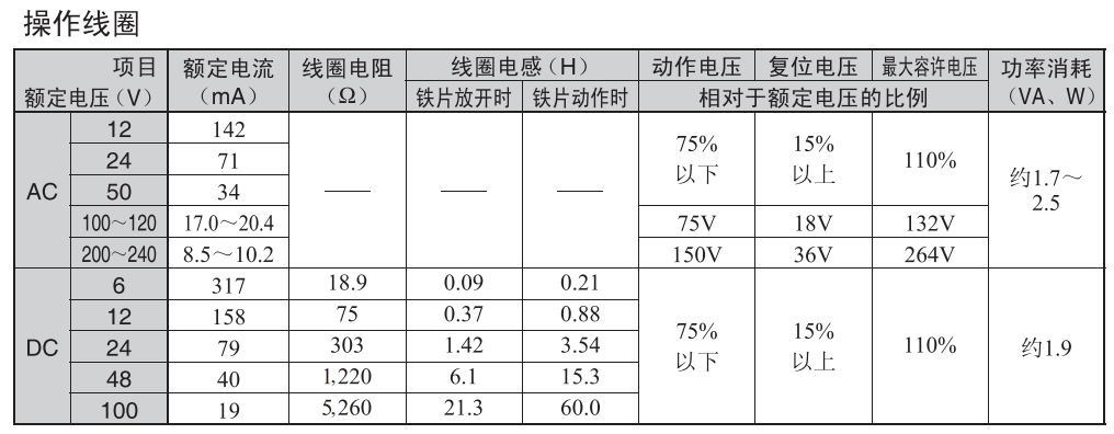 用1個線圈可以覆蓋AC100V系列的AC100-120V 50/60Hz及AC200V系列的AC200-240V 50/60Hz,實現了寬范圍線圈;
