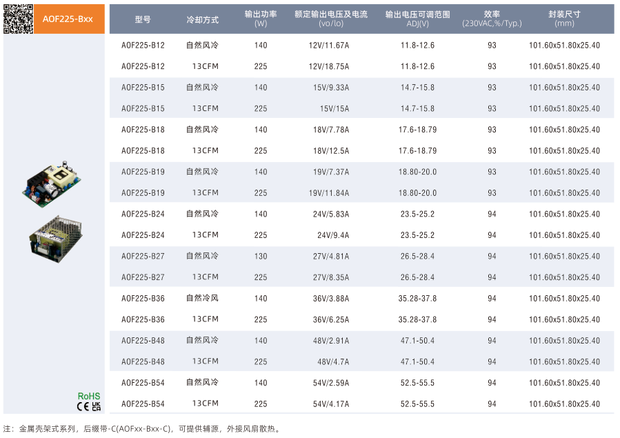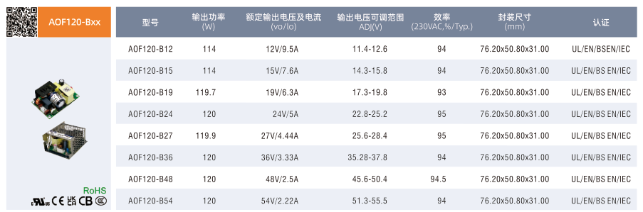 開關電源高功率密度型帶PFC AOF系列(120-750W)
