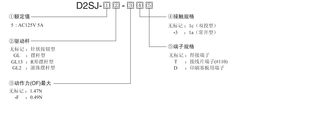 歐姆龍D2SJ微動開關構造簡單、使用方便,可與SS系列安裝互換,符合中國、北美和歐洲安全標準,配有焊接端子、#110接線片端子及印刷基板端子等特點。