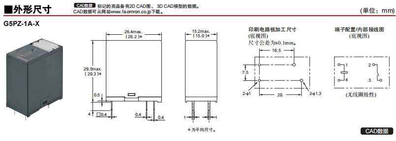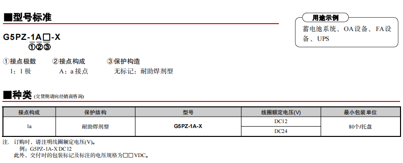 G5PZ-X DC200V 20A小型功率歐姆龍繼電器