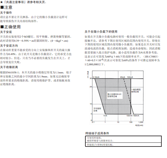 注:1.次數值為標準規格的節點間隔1mm(F ?Gap)的電流常熟,節點間隔為0.5mm(G Gap)的場合,定格多少有所不同,請充分注意。