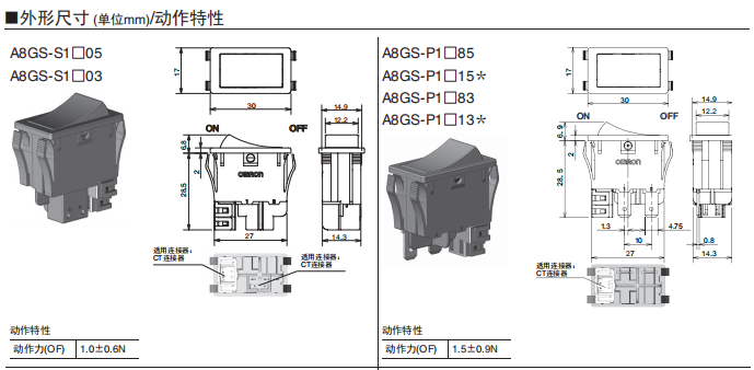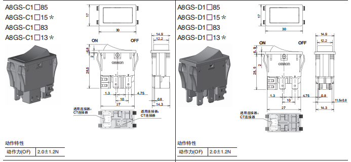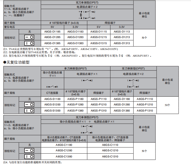 A8GS-C1285遠程復位船形歐姆龍開關