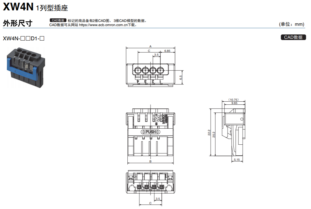 適用于控制設備接口的基板用端子臺/連接器。 XW4M/XW4N連接器插拔簡單,大幅提高作業效率。